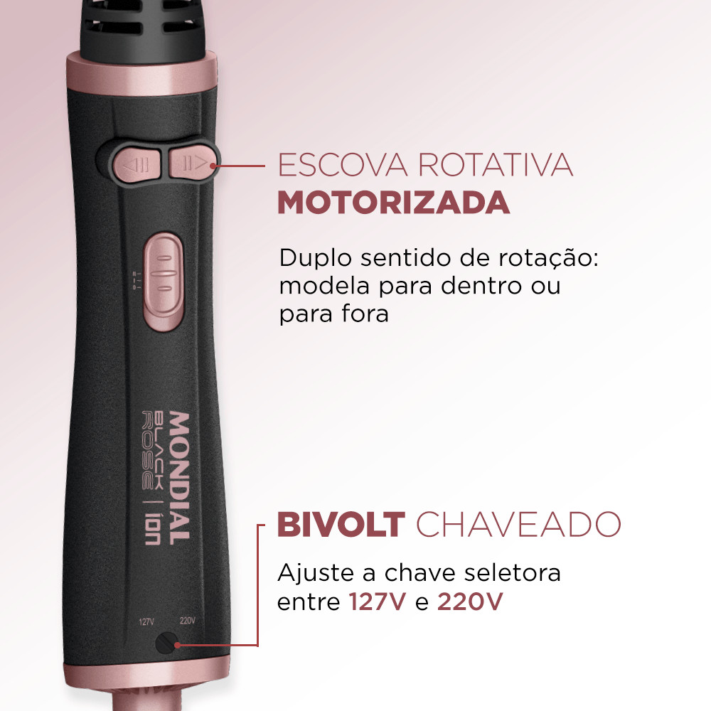 Cabelos prontos em minutos e com acabamento profissional todos os dias com a Escova Rotativa Black Rose Mondial ERB-01 , disponível na Amaia Beleza. Ideal para alisar, modelar, dar volume e finalizar pontas com brilho e zero frizz.