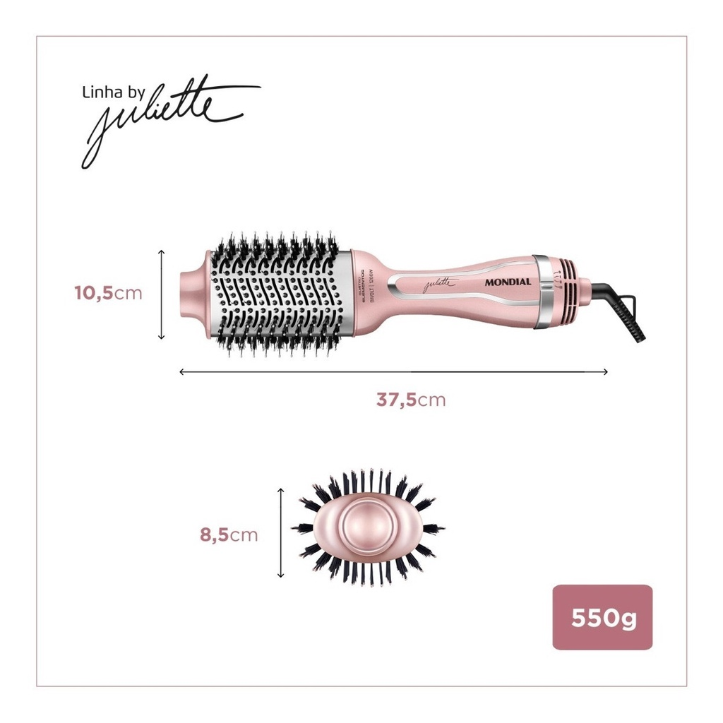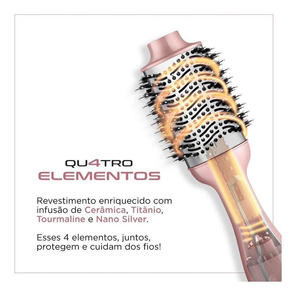 A Escova Secadora e Alisadora Mondial ES-JU-01, da Linha Juliette Quatro Elementos, foi desenvolvida para quem deseja praticidade, brilho e saúde capilar em um único produto. Seu revestimento exclusivo une Cerâmica, Titânio, Turmalina e Nano Prata, cuidando profundamente dos fios enquanto seca, alisa e modela com eficiência e sem frizz.